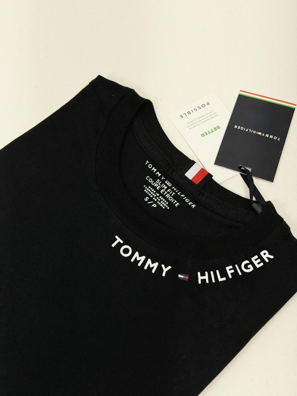 O destaque da peça fica por conta do lettering TOMMY HILFIGER aplicado na gola, trazendo identidade forte, moderna e sofisticada, fugindo do básico tradicional.